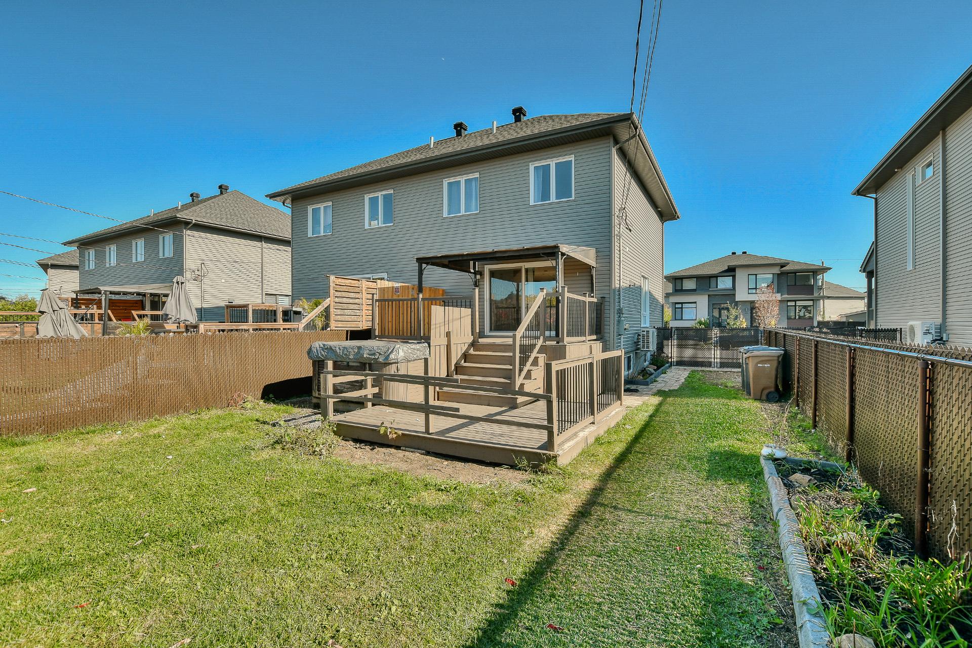 Stunning semi-detached home built in 2016, spacious and filled with natural light. Its open-concept design maximizes space and creates a true sense of grandeur. The property features 2 bedrooms, 2 bathrooms, and a well-organized laundry room for added convenience. Hardwood floors and staircases on both the main and upper levels bring elegance and warmth throughout the home. For year-round comfort, a wall-mounted air conditioner is also included. Outside, enjoy a fully landscaped backyard complete with a 10x10 shed, perfect for additional storage. Ideally located in a sought-after and peaceful neighborhood of Sainte-Marthe-sur-le-Lac